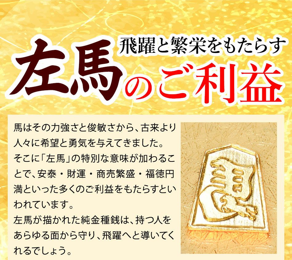 その縁起を純金に刻んだのが「純金左馬種銭」です。