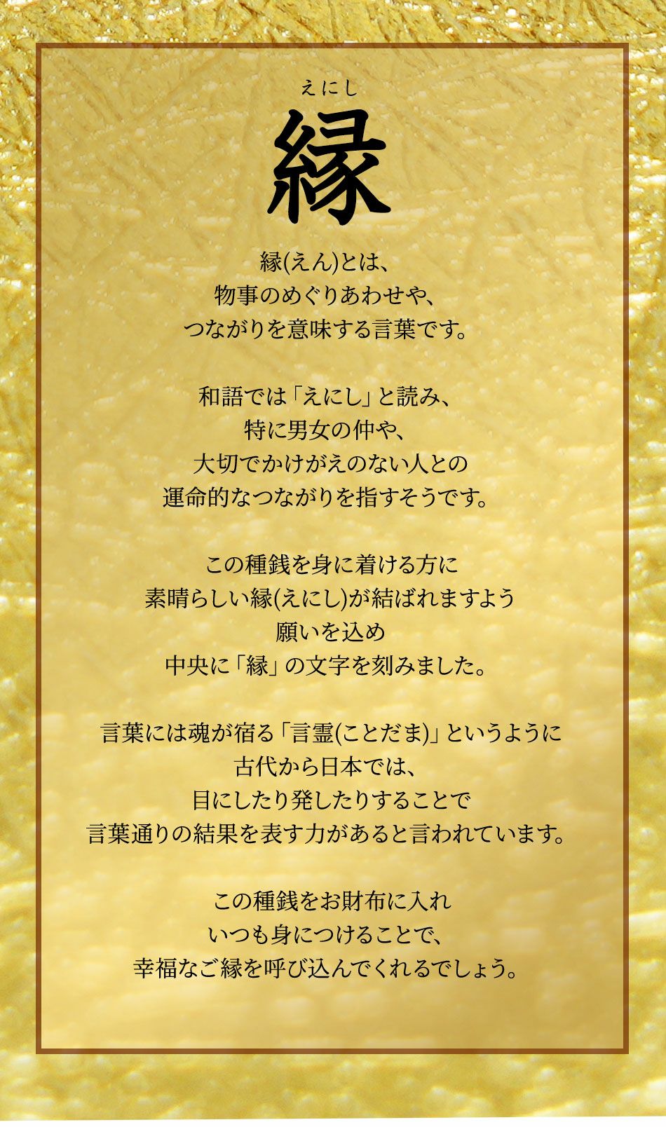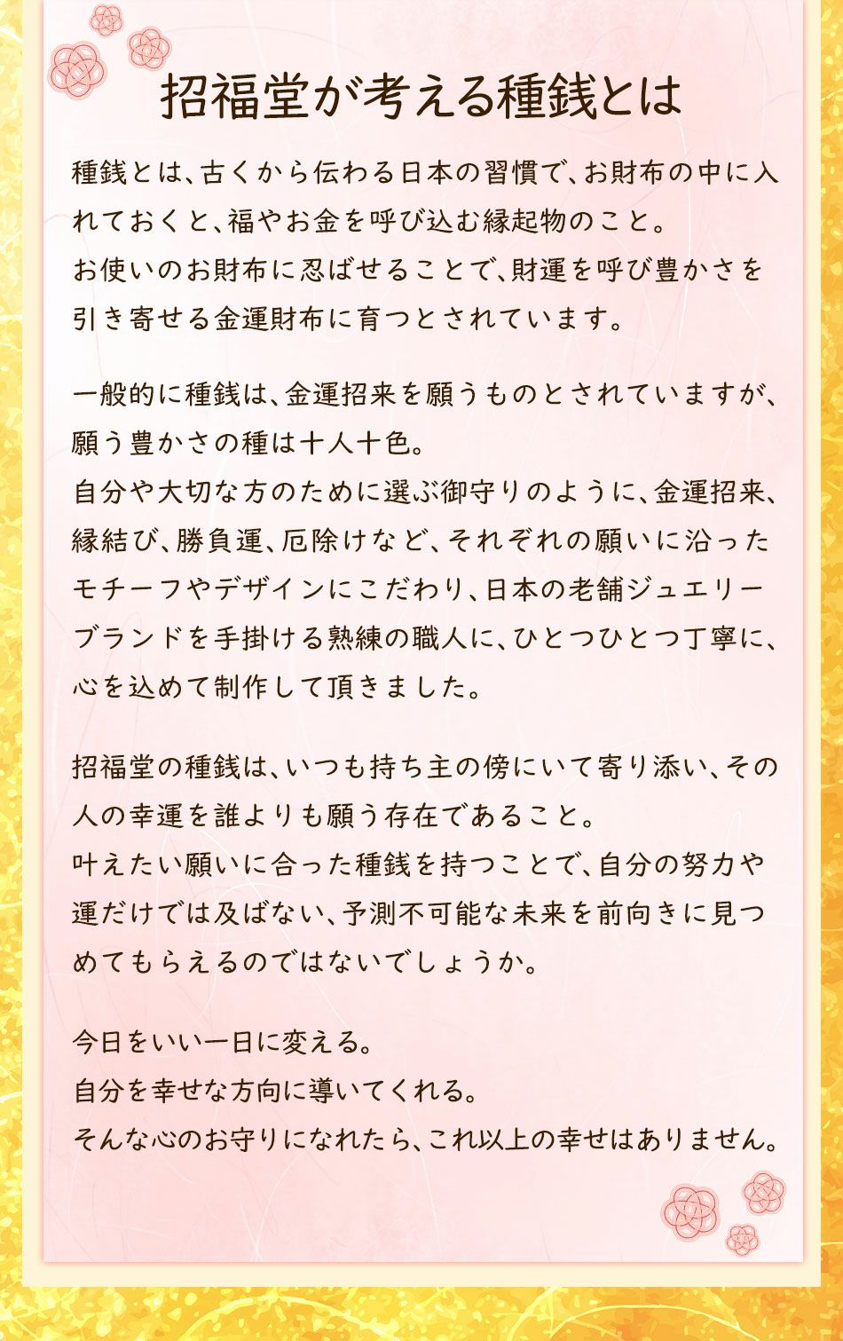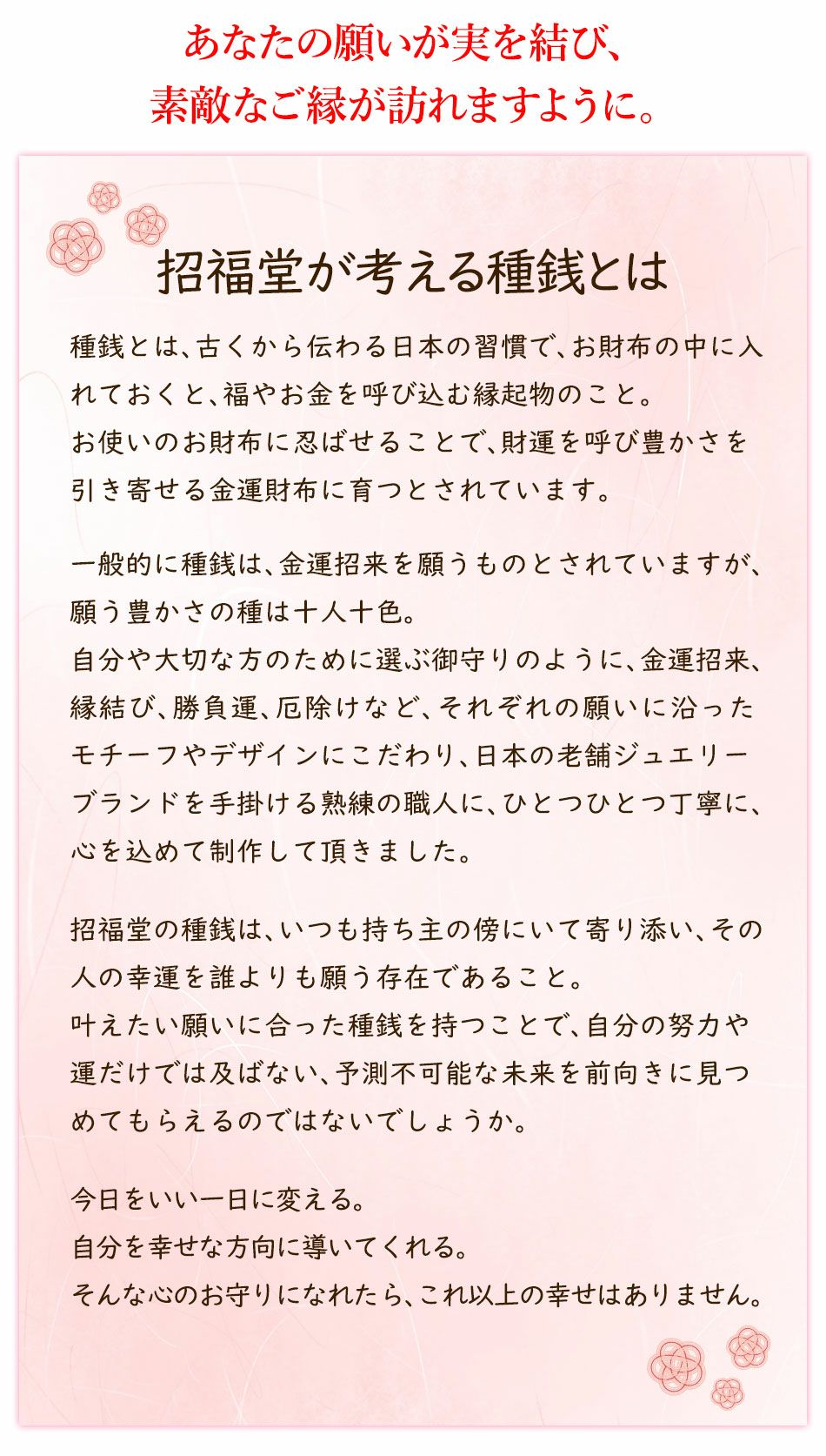 永遠の繁栄を手にしたい方、円満な関係を築き豊かな人生を望む方におすすめの種銭です。