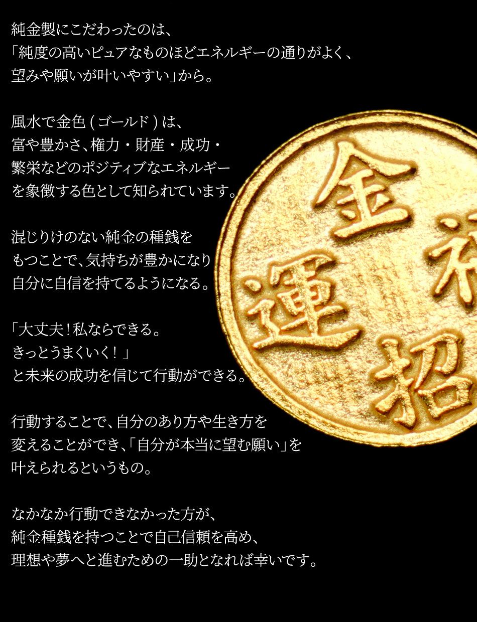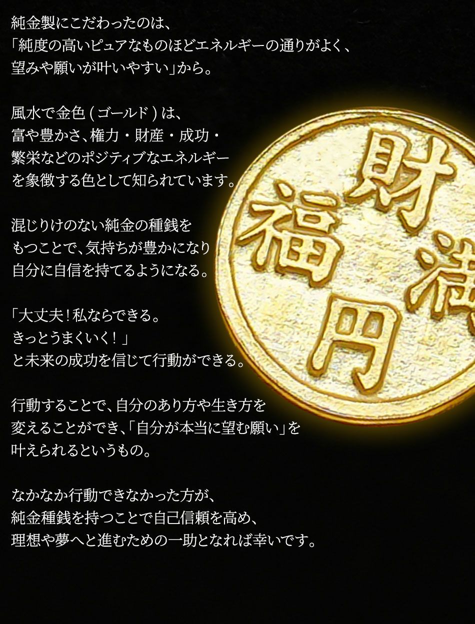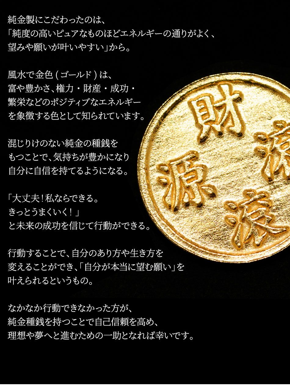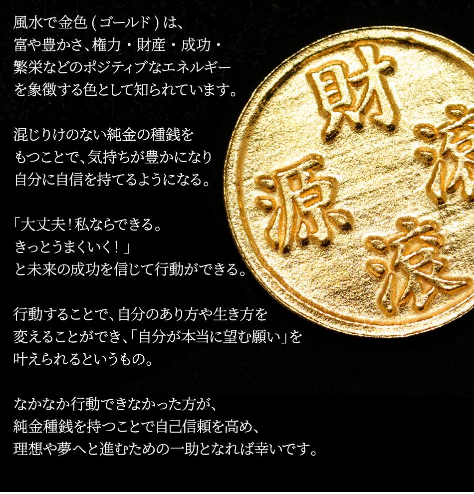 ここでは、すぐに出来て金運アップ効果の高い、純金でできた「種銭」をご紹介します。