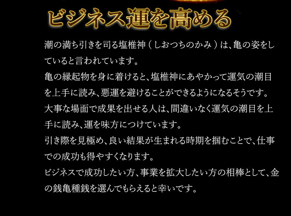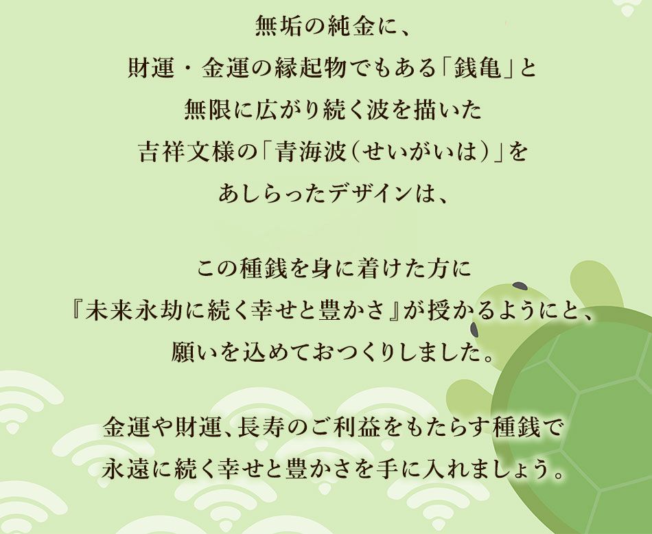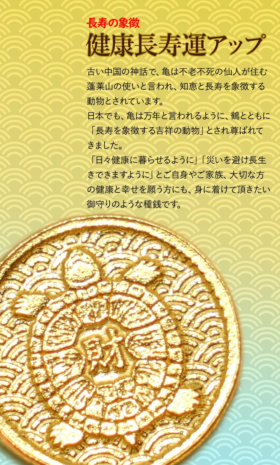 古来より「金を生み財を成す」といわれる縁起の良いといわれる亀をモチーフにした種銭です。