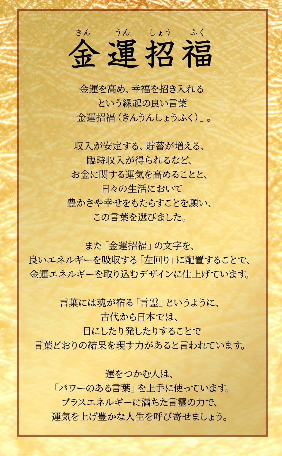 種銭の裏面には、金運を高め幸運を招き入れるという意味の「金運招福」の文字を刻んでいます。