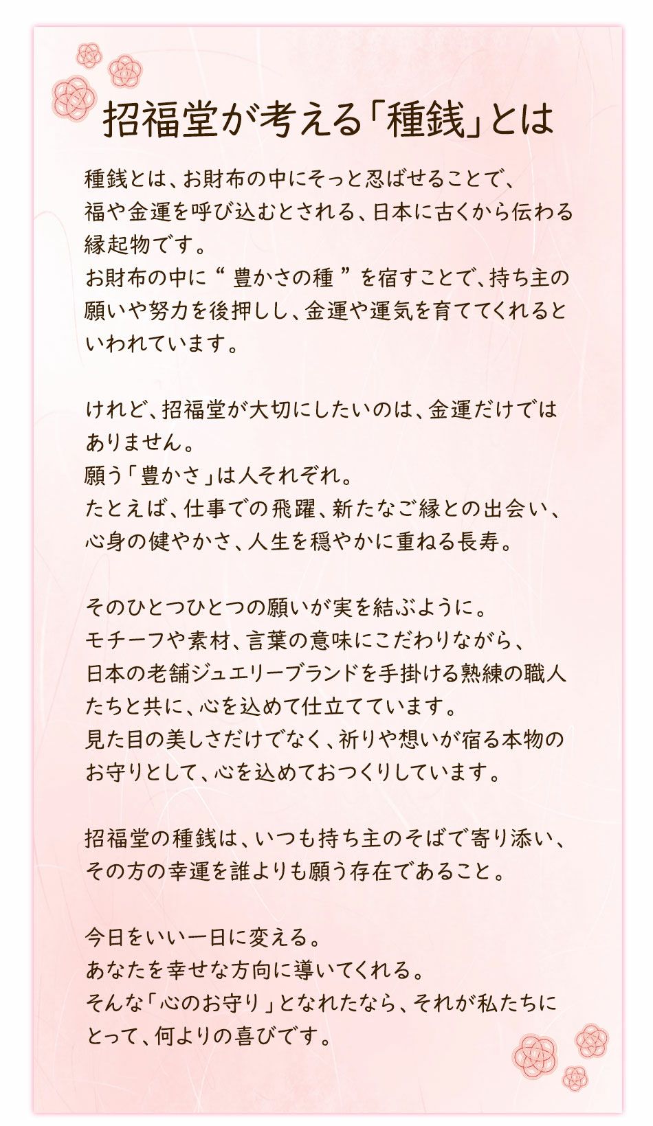 招福堂では、財布に入れるお守り「種銭」を取り揃えております。
