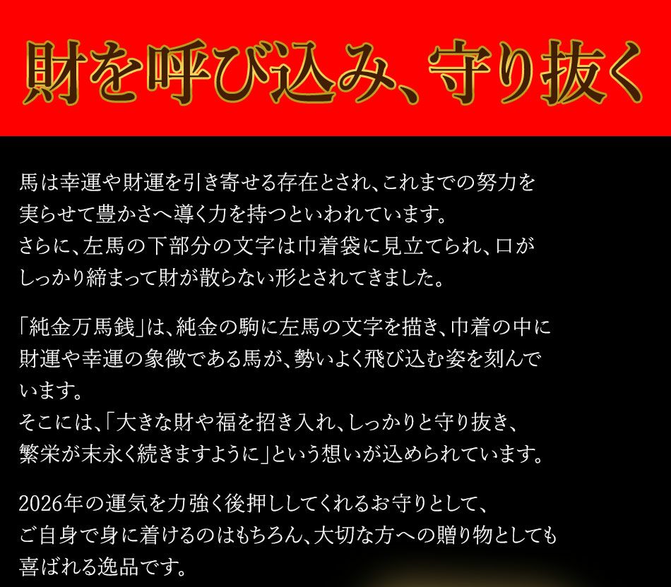 「財を呼び込み、守り抜く」という願いを純金の輝きに込めました。